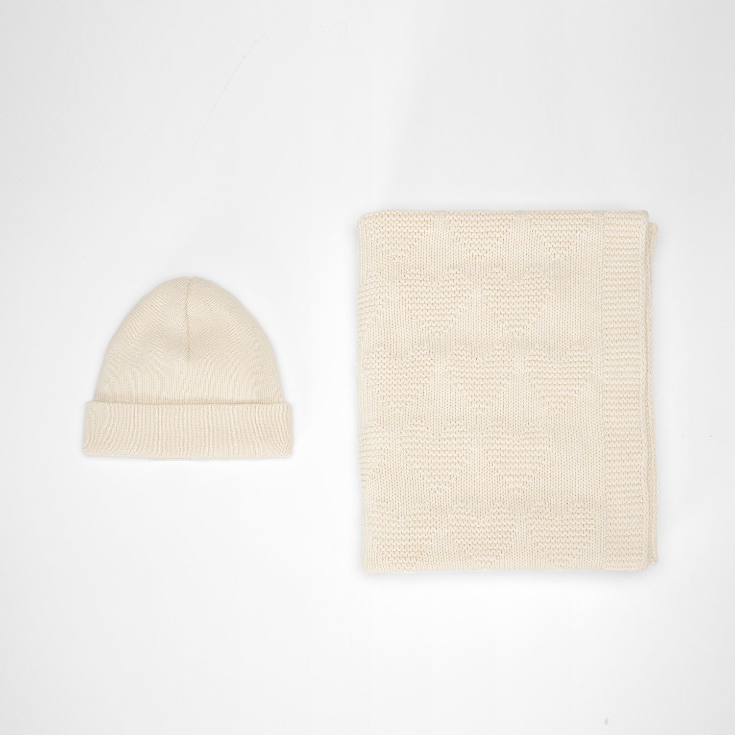 Questo set copertina + berretto sono accessori indispensabili per una neomamma, sono un simbolo di cura e protezione per i momenti più delicati della vita.