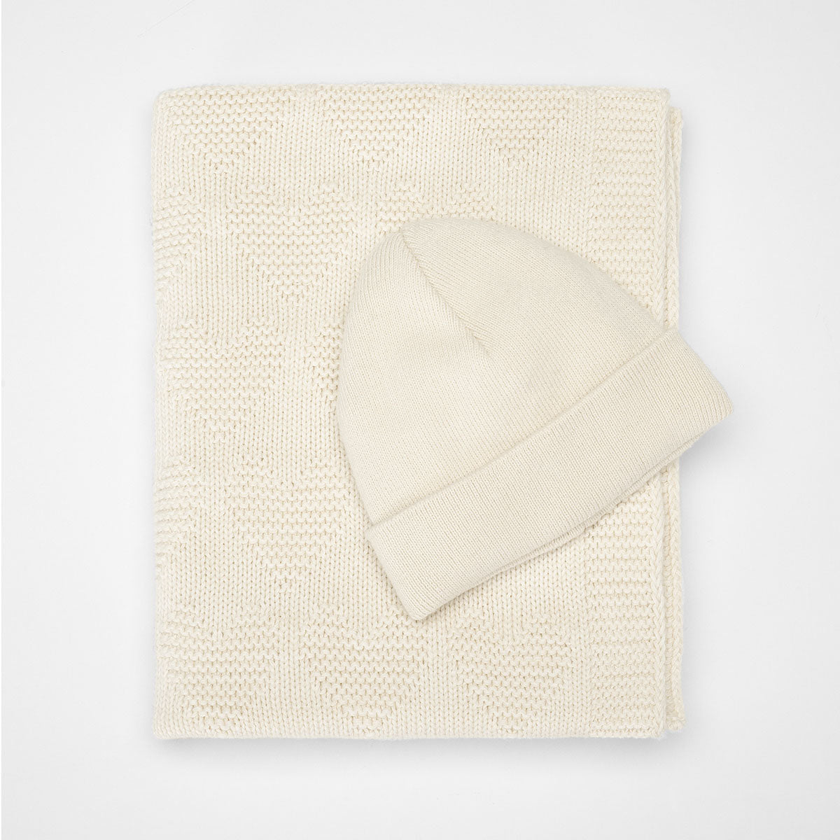 Il set è composto da 1 copertina in cotone o in lana misto cashmere e 1 berretto in cotone, tutto custodito da una box regalo o da una borsa in cotone con le maniche. Inoltre puoi aggiungere facilmente al set il nostro sacco nanna, ideale come regalo originale e completo per una neomamma.